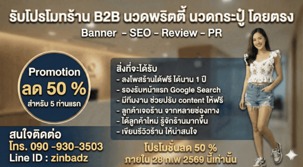 🔥 บริการการตลาดครบวงจร ลงโฆษณา โปรโมทร้าน B2B นวดพริตตี้ โดยตรง
